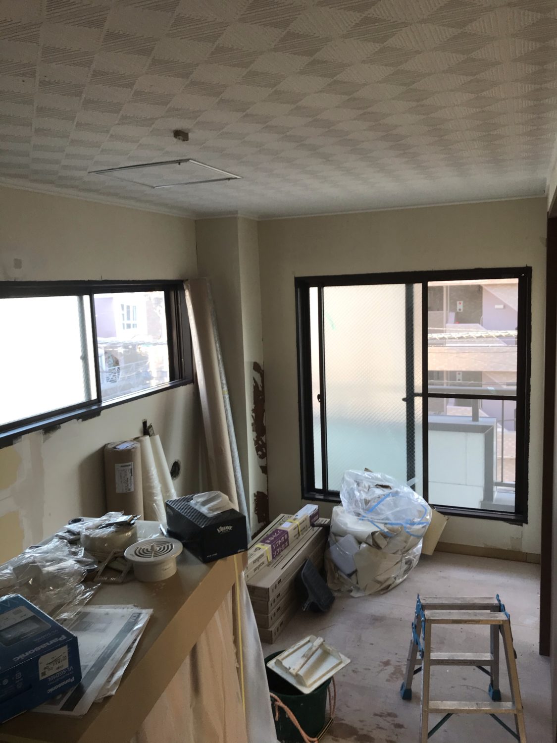 今回ご紹介するのは杉並区で1DKの天井塗装、壁クロス貼り替え、床塩ビ、トイレ土間CF貼り替え、ソフト巾木の工事になります!