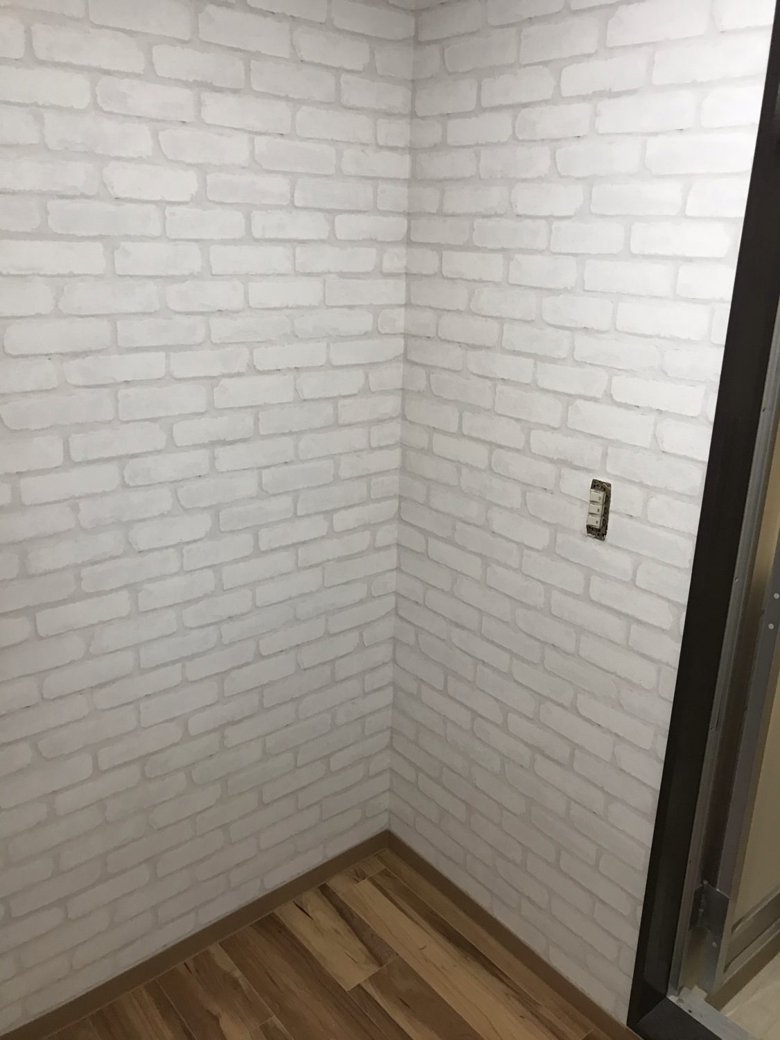 玄関、廊下はレンガ調のクロスでアクセントになってます!