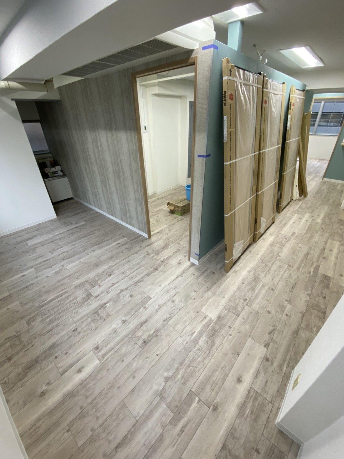 今回ご紹介するのは杉並区にある事務所の新規の壁、クロス、それから塩ビタイル工場です!